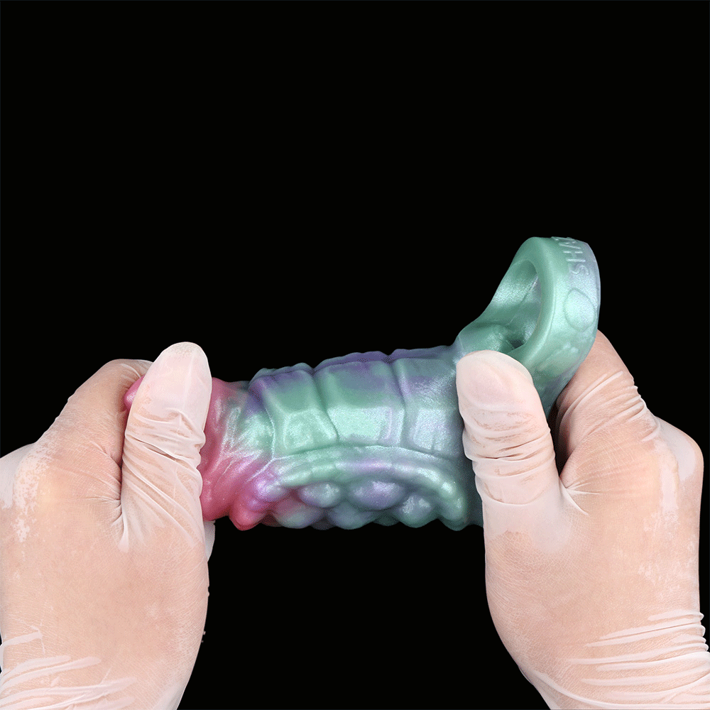 Stel je een intiem moment voor waarin je de grenzen van genot wilt verkennen. Je schuift deze opvallende penis sleeve over je penis, en voelt meteen de comfortabele grip en het vergrotende effect. De testikelbevestigingsring zorgt ervoor dat alles stevig op zijn plaats blijft, waardoor je je volledig kunt concentreren op het genot. De unieke textuur van het schildpadschild aan de buitenkant, gecombineerd met de extra lengte en omtrek, zorgt voor een ongekende sensatie voor jou en je partner.