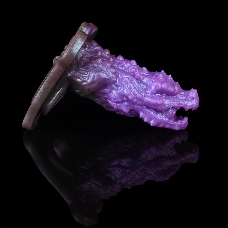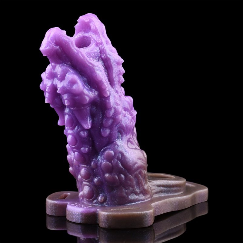 Het oppervlak is bezaaid met scherpe, stekelige ribbels die een levendige, bijna pulserende textuur creëren. De puntige top, met een diepe inkeping, simuleert een krachtige, zuigende sensatie bij elke beweging – rauw, intens en verslavend. Dit is een ervaring die grenzen verlegt, waar genot en een vleugje dreiging samensmelten tot een onvergetelijke sessie.