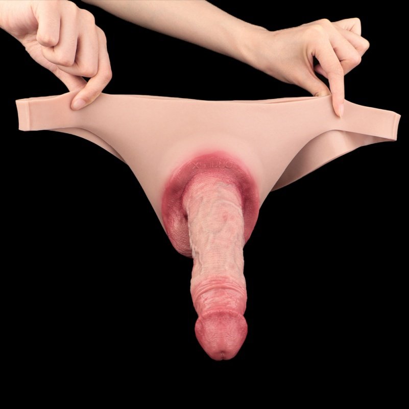 - Realistische externe vorm: De buitenkant van de slip heeft een levensechte penisvorm met gedetailleerde aders, een natuurlijke eikel en subtiele huidtextuur, wat zorgt voor een overtuigende visuele verlenging.