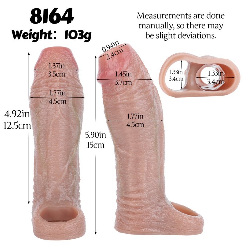 Vroeger was intiem zijn altijd een bron van paniek. Terwijl de wereld vol lijkt te zijn van mannen met perfecte stijve penissen, voelde ik me vaak tekortschieten. Tot ik besloot deze peni sleeve te proberen. Voordat ik hem aandeed, bracht ik wat glijmiddel aan, wat ervoor zorgde dat hij soepel en makkelijk aan te trekken was.