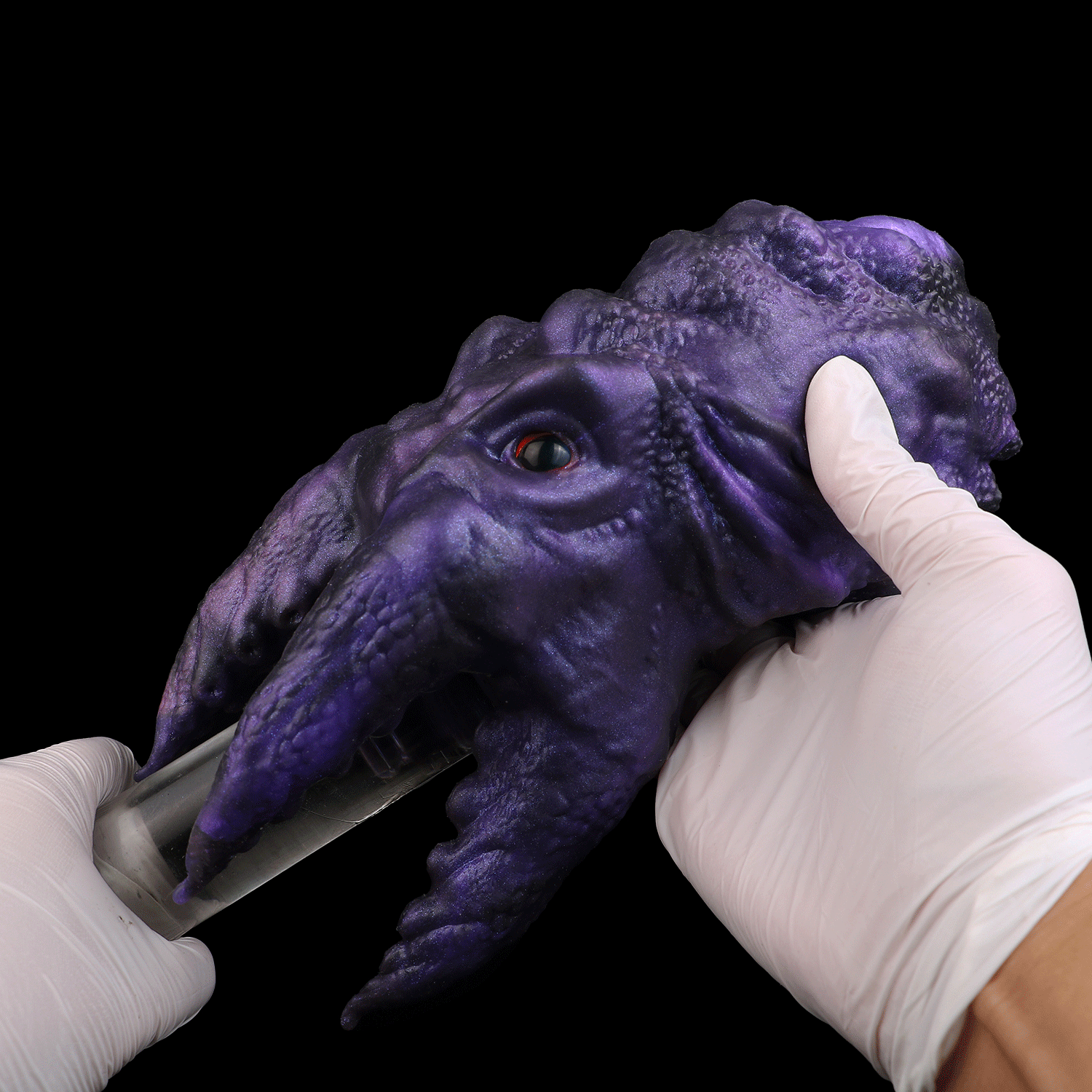 Je brengt een royale hoeveelheid glijmiddel op waterbasis aan bij de verborgen mondopening. Terwijl je naar binnen glijdt, voel je direct de strakke weerstand; dit is zonder twijfel een strak kut of keel simulatie die je verbeelding tart. De gelaagde ribbels binnenin masseren je eikel meedogenloos. Je knijpt zachtjes in de zachte siliconen behuizing, waardoor je de zuigkracht en het vacuüm in de koker verhoogt. Elke stoot voelt alsof je wordt opgeslokt. De combinatie van de visuele alien-fantasie en de overweldigende fysieke grip zorgt voor een explosief hoogtepunt, perfect voor iedereen die wil masturberen buiten de gebaande paden.