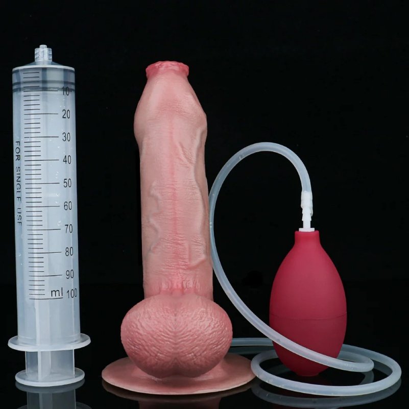 Stel je voor: je draagt een comfortabel harnas dat perfect aansluit op je lichaam, terwijl je deze realistische dildo vasthoudt. Deze squirting dildo, met zijn warme, vleesgekleurde uiterlijk en levensechte textuur, voelt aan als een echte penis. De subtiel verschuivende voorhuid en de zichtbare aderstructuren maken elke aanraking intens en meeslepend. Aan de top van de eikel zit een smalle spleet, klaar om een krachtige, gecontroleerde squirting-ervaring te bieden die je spel naar een nieuw niveau tilt.