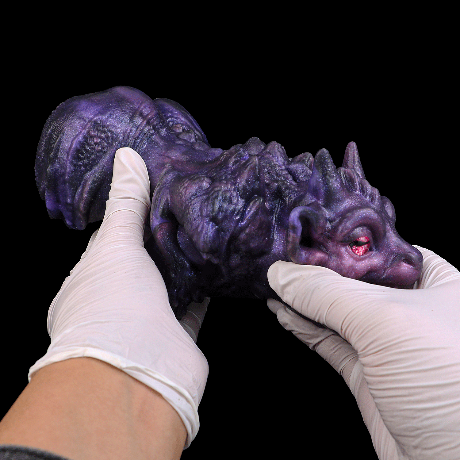 Stel je voor: het is diep in de nacht en je bent klaar voor een intense sessie masturbatie. Je pakt de paarse, buitenaardse draak vast. Het gewicht en de onregelmatige schubben voelen perfect aan in je hand, zacht maar stevig en levensecht. Je brengt rijkelijk glijmiddel aan; sommigen vinden het heerlijk om eerst even het vingeren kutje na te bootsen om het glijmiddel diep in de indrukwekkende, golvende interne structuren (“undulating texture”) te masseren.