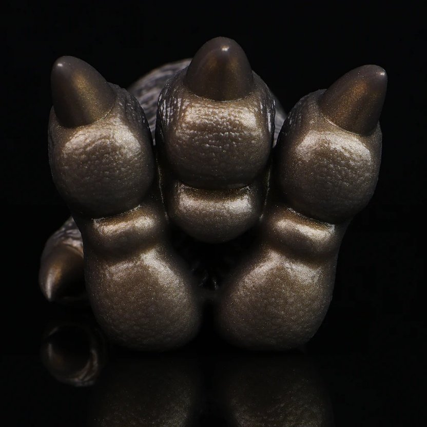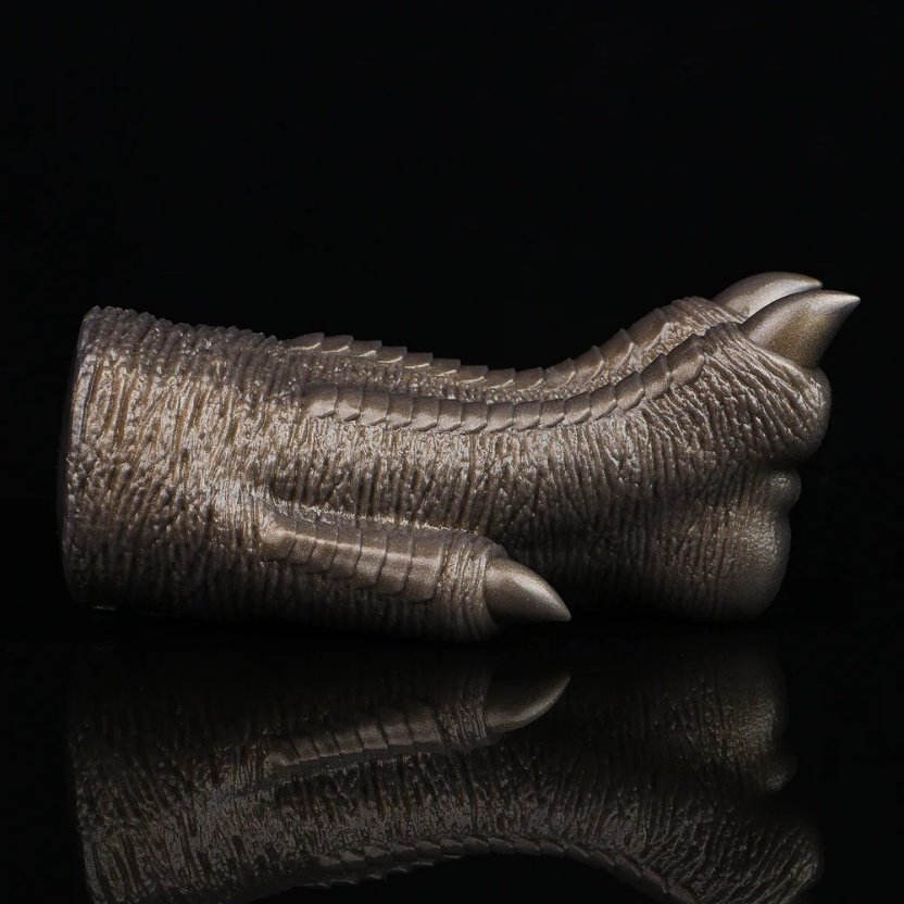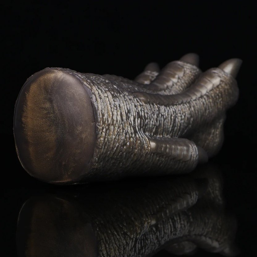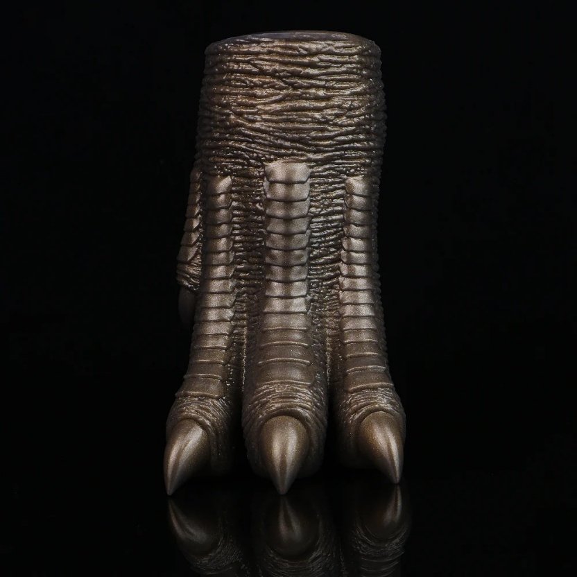 Je pakt de zware klauw op. De buitenkant voelt stevig en de schubben geven een goede grip. Je brengt wat glijmiddel aan in de verborgen opening in de handpalm. Terwijl je naar binnen glijdt, omhult het zachte, elastische materiaal je volledig. De binnenkant is net zo gedetailleerd als de buitenkant, met ribbels die elke beweging intensiveren. Het voelt als een strakke, warme omhelzing. Na afloop maak je hem schoon, laat hem drogen en zet je hem terug op de plank. Niemand die vermoedt dat jouw stoere decoratie eigenlijk een pocketpussy is.