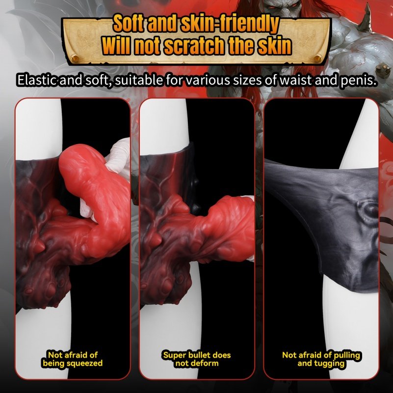 - Gedetailleerd Monsterontwerp:De peniskoker heeft een uniek, monster-geïnspireerd ontwerp met gedetailleerde texturen, zoals schubben en richels, die zorgen voor extra stimulatie. De zachte, flexibele siliconen voelen natuurlijk aan en passen zich aan de lichaamsvorm aan, terwijl de stevige pasvorm zelfs bij intensieve bewegingen op zijn plaats blijft.