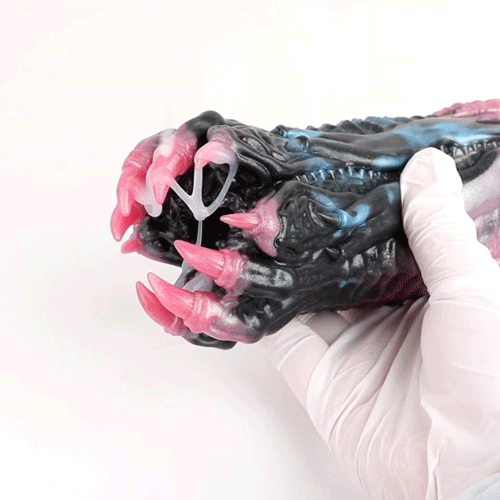 Je brengt een ruime hoeveelheid glijmiddel op waterbasis aan op de ingang – de roze klauwen glinsteren nu uitnodigend (zoals op de foto waar het glijmiddel druipt). Terwijl je de sex toy vastpakt, voel je de grip van de externe ribbels en schubben; hij glijdt niet uit je hand, hoe wild het ook wordt.