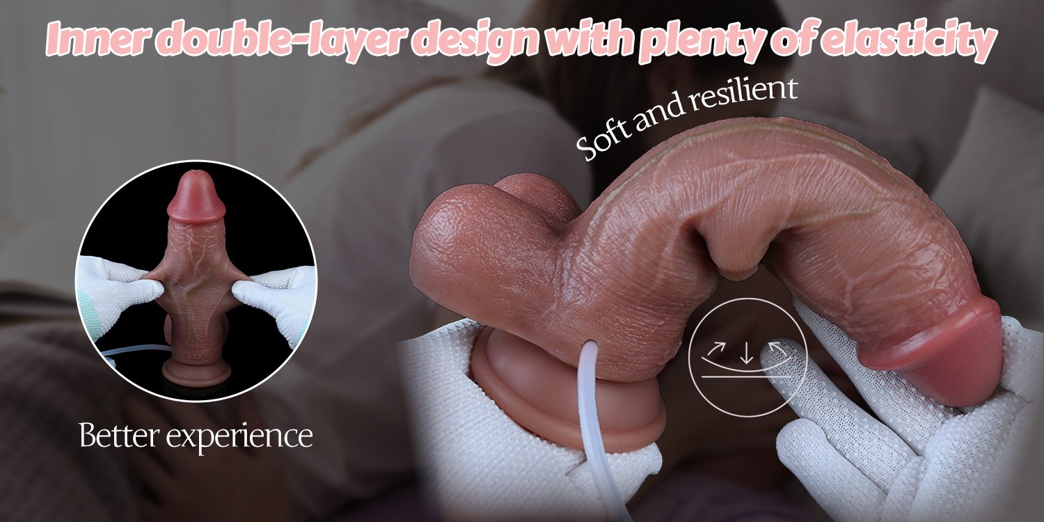 De dildo is voorzien van een intern kanaal en een externe spuit. Hiermee kun je warm water of glijmiddel injecteren om een ejaculatie (zaadlozing) of squirting ervaring na te bootsen. Perfect voor wie houdt van het gevoel van sperma spuiten in of op het lichaam.