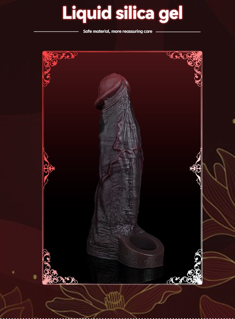 - Dubbele Functie: Verlenging & Vertraging: De sleeve voegt aanzienlijke lengte en dikte toe. De geïntegreerde lus aan de basis gaat om de testikels en werkt als een cockring. Dit stuwt bloed terug in de penis voor een hardere stijve penis en helpt vroegtijdige ejaculatie te voorkomen (“Ejaculation Control”).