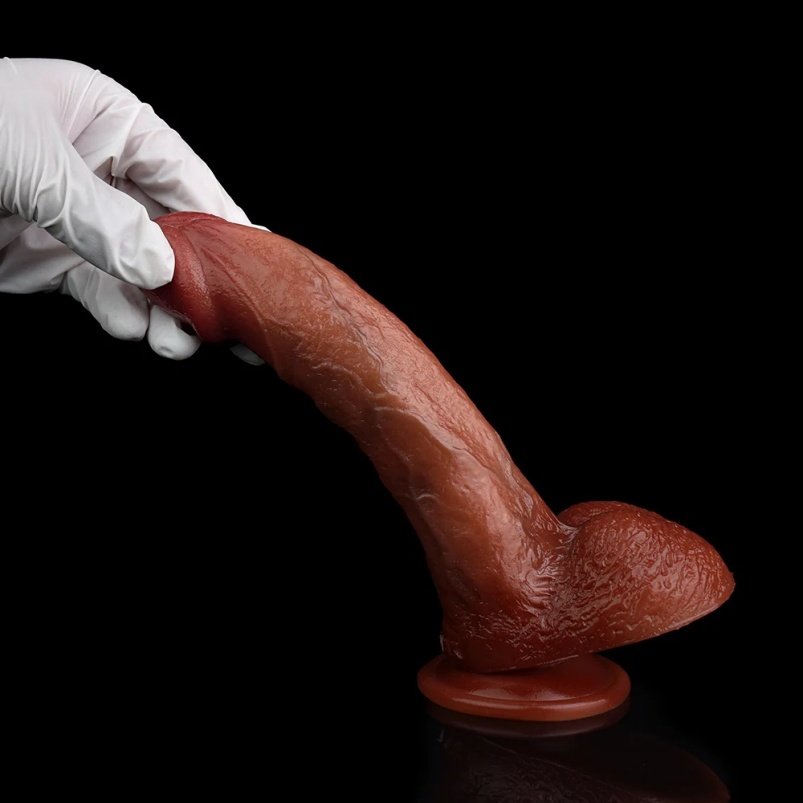 Deze realistische siliconen suction cup dildo met zuignap is ontworpen voor vrouwen en koppels die intense G-spot stimulatie en anale avonturen zoeken met een natuurlijke, levensechte ervaring. De zachte, huidvriendelijke siliconen en anatomisch gebogen schacht zorgen voor precieze druk op de G-spot of anale zones, terwijl de gedetailleerde aders en subtiele krommingen een authentieke sensatie bieden. Met een diepe, roodbruine tint straalt deze dildo een robuuste en vlezige uitstraling uit.
