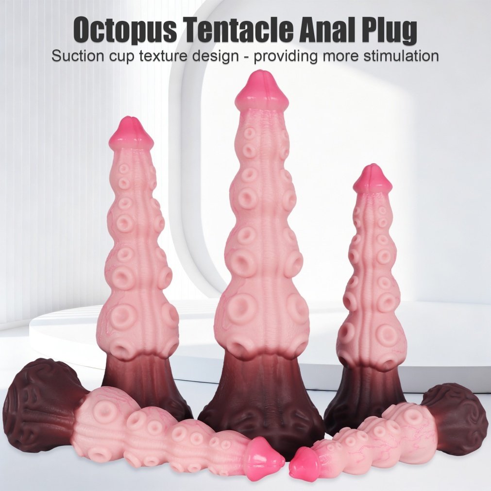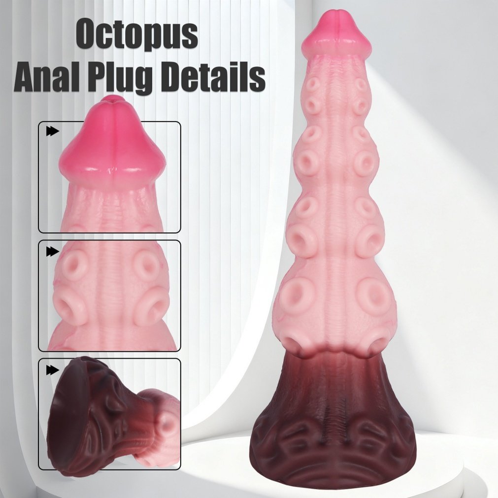 Het is laat, het huis is stil, en je hebt behoefte aan iets intens. Je pakt deze zachte, vlezige monstercock en bewondert de unieke “Octopus Anal Plug Details”, met zijn realistische, afgeronde eikel en rijen opvallende bobbels. Je brengt een royale laag glijmiddel op waterbasis aan.