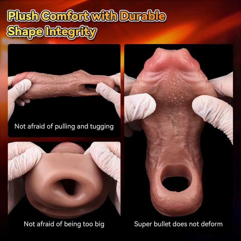 - Verlenging en Vergroting: De siliconen huls voegt lengte en omvang toe, specifiek ontworpen voor mannen met een micropenis, om een zelfverzekerder gevoel te geven.